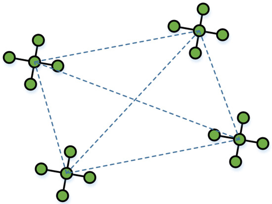 To address the challenges posed by high-dimensional and nonlinear optimization in asynchronous indoor localization, this study adopts a star-topology-based initialization strategy to construct the initial particle population. In this design, the overall population is divided into multiple subgroups, each organized in a star-shaped structure comprising a central particle and several surrounding particles. Figure 7 shows a topological diagram of a star structure.