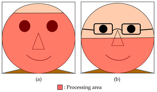 Example of processing area specification. (a) Without glasses. (b) With glasses.