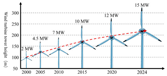 Figure 1). Moreover, the height of the tower needs to be increased in order to capture more wind energy, so the height of the wind turbine needs to be continuously increased to meet the increase in installed capacity (as shown in