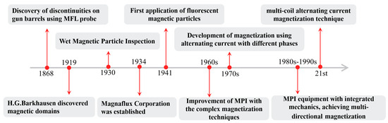 Magnetic particle inspection (MPI) technology has gone through several important stages of development since the discovery of magnetic domains by H. G. Barkhausen in 1868, as can be seen in