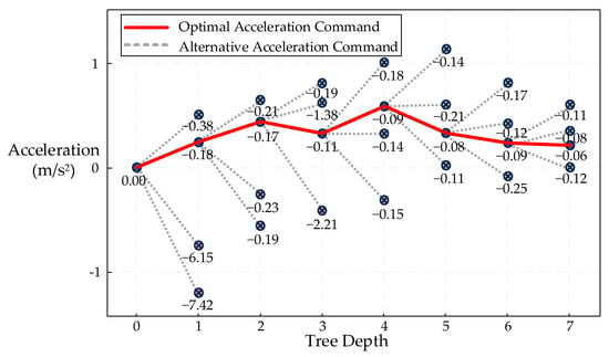 Upon the generation of a lane-change intention, MCTS is employed to explore the optimal lane-change trajectory []. The MCTS process comprises the following four steps: