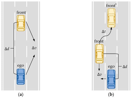 In this equation, Δdis denotes the longitudinal distance between the ego and leading vehicle, and Δv represents their relative velocity. Existing studies generally regard TTC values below 1.5 s as indicative of an imminent collision risk []. In this study, 0.7 s−1 is adopted as the TTC−1 boundary between near-collision and safe scenarios.