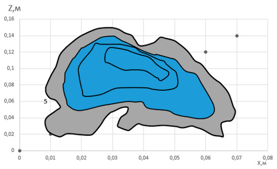 and its value is determined basing on the considerations that the spatial resolution errors by coordinates are equal to half the spatial resolution values of the three-dimensional model by the corresponding coordinates, , (the numbers are indicated for the three-dimensional model used in the work, built based on high-resolution radial cross-section data);