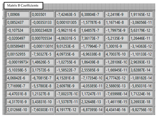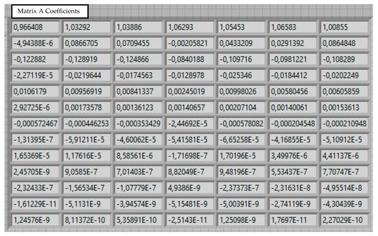 This dependence is implemented in LabVIEW environment and is shown in Figure 11. To be able to use the obtained data in other programs using additional software, the coefficient matrix is imported into an external data file.