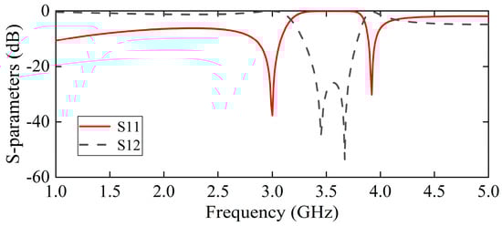 The electromagnetic field simulation results of the scattering parameters of the sensing probe.