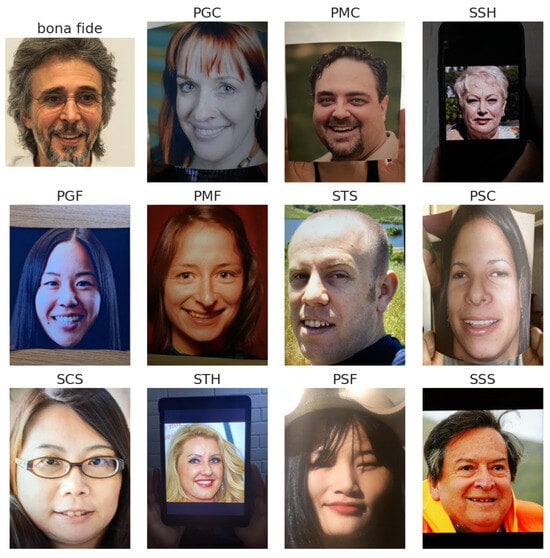 It includes 3000 authentic (bona fide) presentations from the FFHQ database and 11,000 PA samples. Figure 2 illustrates the dataset’s diversity, showing bona fide images and a range of PAIs divided into two categories: