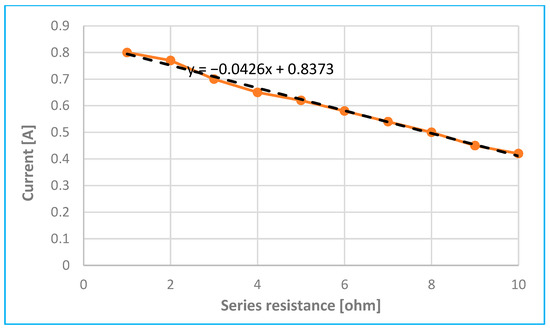 Figure 14 clearly illustrates the effect of changing series resistance on the maximum achievable injector current. Figure 17 further demonstrates this relationship. An increase in series resistance—caused, for example, by partial damage, oxidation, or wear of the injector connectors—can lead to a noticeable reduction in current. Therefore, it is recommended to monitor any decrease in current as a potential indicator of such issues.