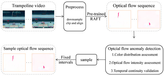 For each video input, an optical flow sequence will be output after extraction and sampling. The complete workflow of optical-flow extraction and sampling is shown in