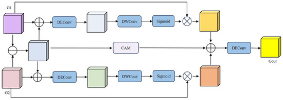 where − denotes elemental subtraction. is elementally spliced with and , and then DEConv is performed to obtain and as follows: