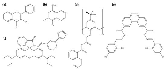 - Sutariya, P.G.; Soni, H.; Gandhi, S.A.; Soni, S.S.; Prasad, J. A dual-response naphthalene-armed calix[4]arene based fluorescence receptor for Zr[IV] and Fe[II] via Ligand to metal charge transfer. Sens. Actuators B 2021, 331, 129417. [Google Scholar] [CrossRef]