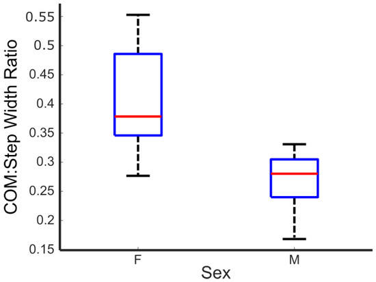 | CoM:Step Width Ratio * | 0.27 (0.05) | 0.41 (0.09) | −4.2519 | 0.0005 |