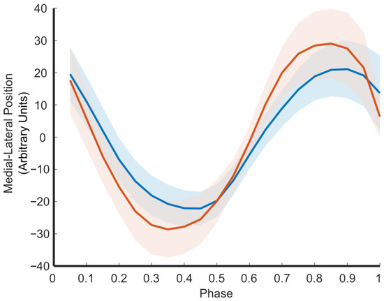 - Takada, Y.; Atomi, T.; Yagi, T.; Yamamoto, S.; Tomita, M.; Shimizu, M.; Atomi, Y. Effects of step width and gait speed on the variability of mediolateral control in the head and trunk during gait. PLoS ONE 2025, 20, e0320652. [Google Scholar] [CrossRef]