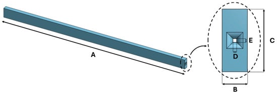 In this study, two flexible sensors for wearable applications were designed to identify the shoulder motion plane. The geometry, identical for both sensors, was defined through CAD modeling using OnShape® software (https://www.onshape.com/en/, accessed on 20 June 2025), with a cubic shape designed to adapt to the skin and promote uniform stress distribution. During the design phase, a dedicated longitudinal channel for housing the optical fiber was included, located in the middle layer of the sensor, to ensure fiber protection during use and printing and to promote proper transmission of mechanical deformations. The design and dimensions are shown in Figure 1 and Table 1, respectively.