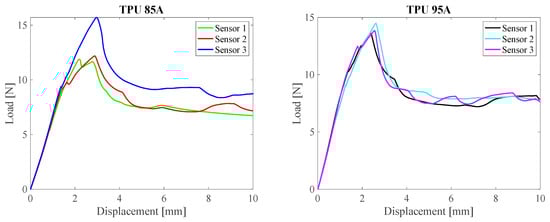 The use of two different types of TPU was intended to evaluate how the mechanical properties of the material affect the sensor’s response.