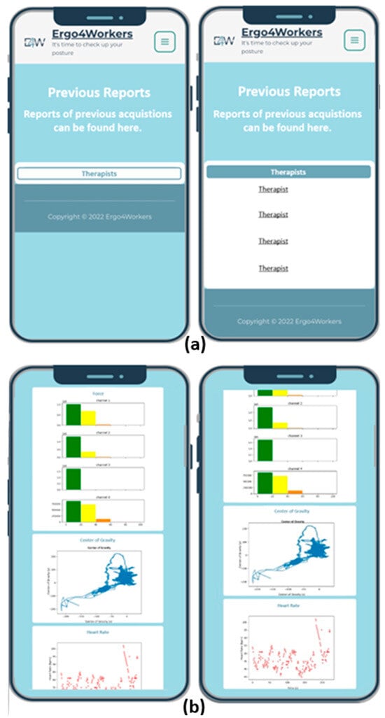 Furthermore, the group of occupational therapists was also queried regarding their perception of the utility and interpretability of the graphs incorporated in the reports. Valuable insights and improvement opportunities were gleaned from engaging in discussions with these professionals and their perspectives and recommendations. During these conversations, three therapists highlighted the need for a more comprehensive description of the axes in the graph depicting the displacement of the CoG position, as measured by the force platform. In the final prototype, the axes are denoted as “x” and “y”. The suggestions were addressed to facilitate a more intuitive interpretation and included specifying the dimensions of displacement in terms of left, right, front, and back.