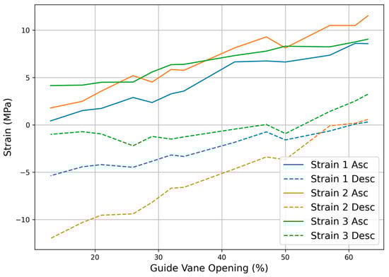 - Doujak, E.; Maly, A.; Unterluggauer, J.; Haller, F.; Maier, M.; Blasbichler, C.; Stadler, S. Fatigue Strength Analysis of a Prototype Francis Turbine in a Multilevel Lifetime Assessment Procedure Part III: Instrumentation and Prototype Site Measurement. Energies 2023, 16, 6072. [Google Scholar] [CrossRef]