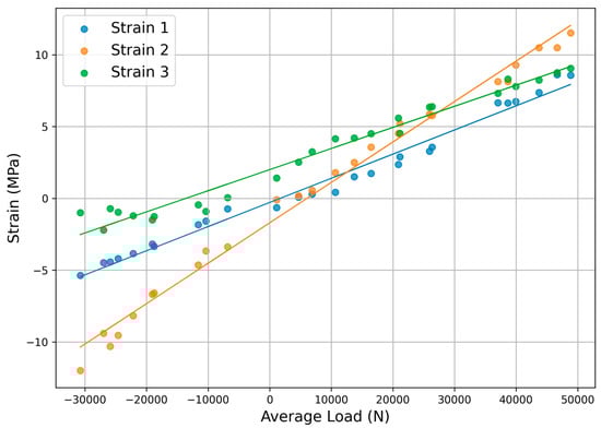 - Strain-to-stress conversion (based on material elastic modulus E = 206 GPa);