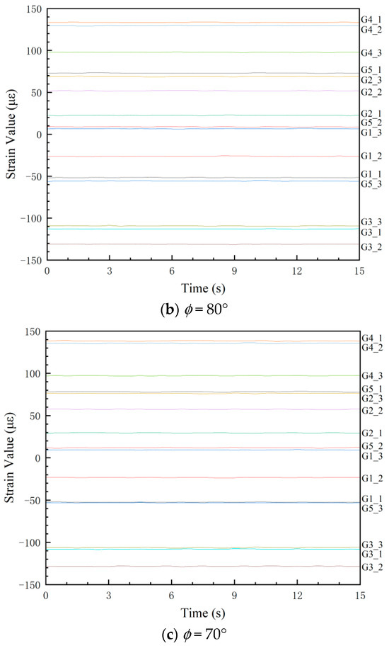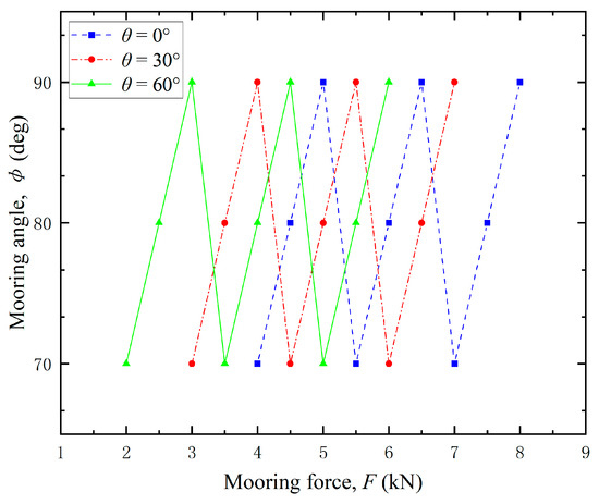 To further verify the general applicability of the proposed methodology, additional validation experiments were conducted under diverse loading conditions. The variation of the mooring force F with varying horizontal angle θ and vertical angle ɸ was simulated in the test, and the loading condition is detailed in Figure 18.