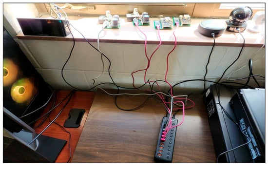 Beyond data generation, the testbed facilitates the study of IoT security, privacy, and interoperability. Smart buildings often integrate devices from multiple vendors, posing challenges for unified standards and protocols []. Our testbed allows simulation of such environments, enabling assessment of security mechanisms under realistic conditions. It also supports distributed architectures, aligning with the decentralized nature of modern IoT systems [,], and provides insights into optimizing security and privacy in multi-device contexts.
