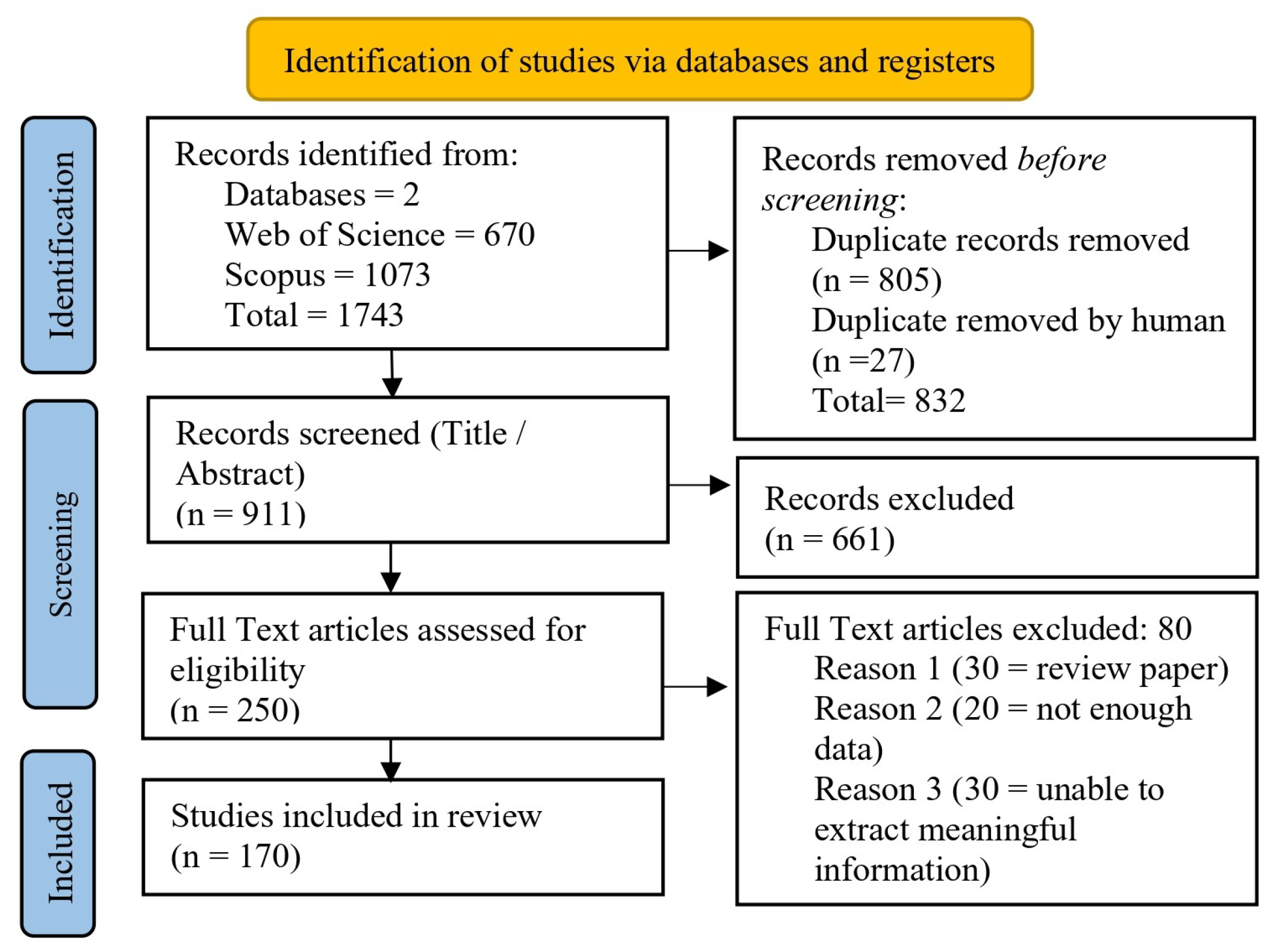 One author initially screened the research articles identified through the keyword search based on their titles and abstracts. A total of 911 studies were critically reviewed during this phase. All articles relevant to the topic of this study were included, while irrelevant studies were excluded.
