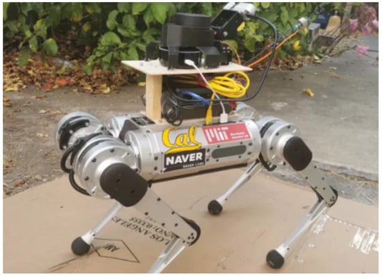 To validate the practical deployment of the proposed system, we established a complete experimental setup utilizing the Jetson Orin Nano Super as the central processing unit and the Intel RealSense D435i camera as the visual perception module. In this configuration, the D435i camera serves as the “eyes” of the machine guide dog, continuously capturing RGB video streams at 1280 × 720 resolution with a frame rate of 30 FPS. The Jetson Orin Nano Super functions as the main controller, executing real-time inference using the optimized YOLO model. The physical implementation of this hardware system is illustrated in Figure 10.