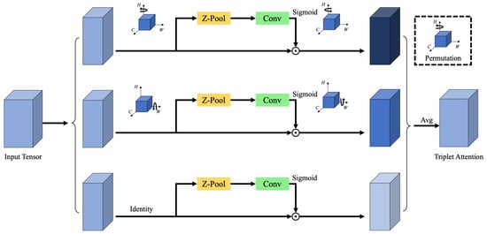 where  denotes the sigmoid activation function and , , and  represent the standard 2D convolutional layers of the three branches in Triplet Attention, with a kernel size of k. After simplifying (2),  becomes: