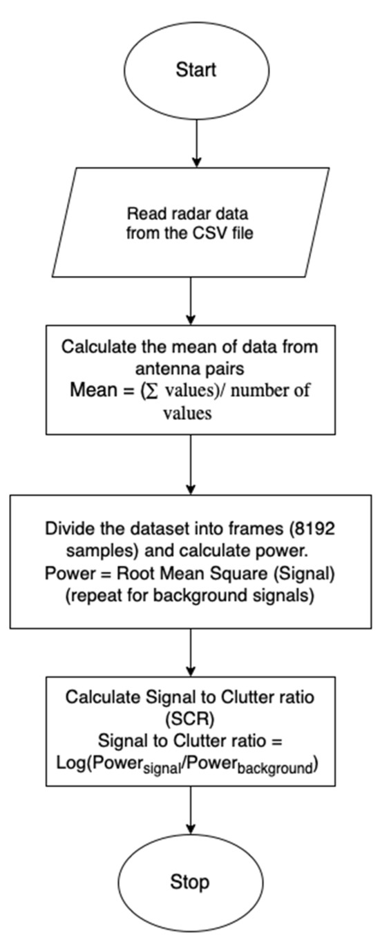 23]. Radar data were exported in CSV format for post-processing (as outlined in the signal processing flowchart,