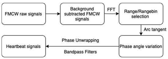 The proposed signal processing pipeline, comprising background subtraction, range bin selection, filtering, and phase unwrapping, enabled the accurate extraction of cardiac-related signals from raw FMCW radar data.