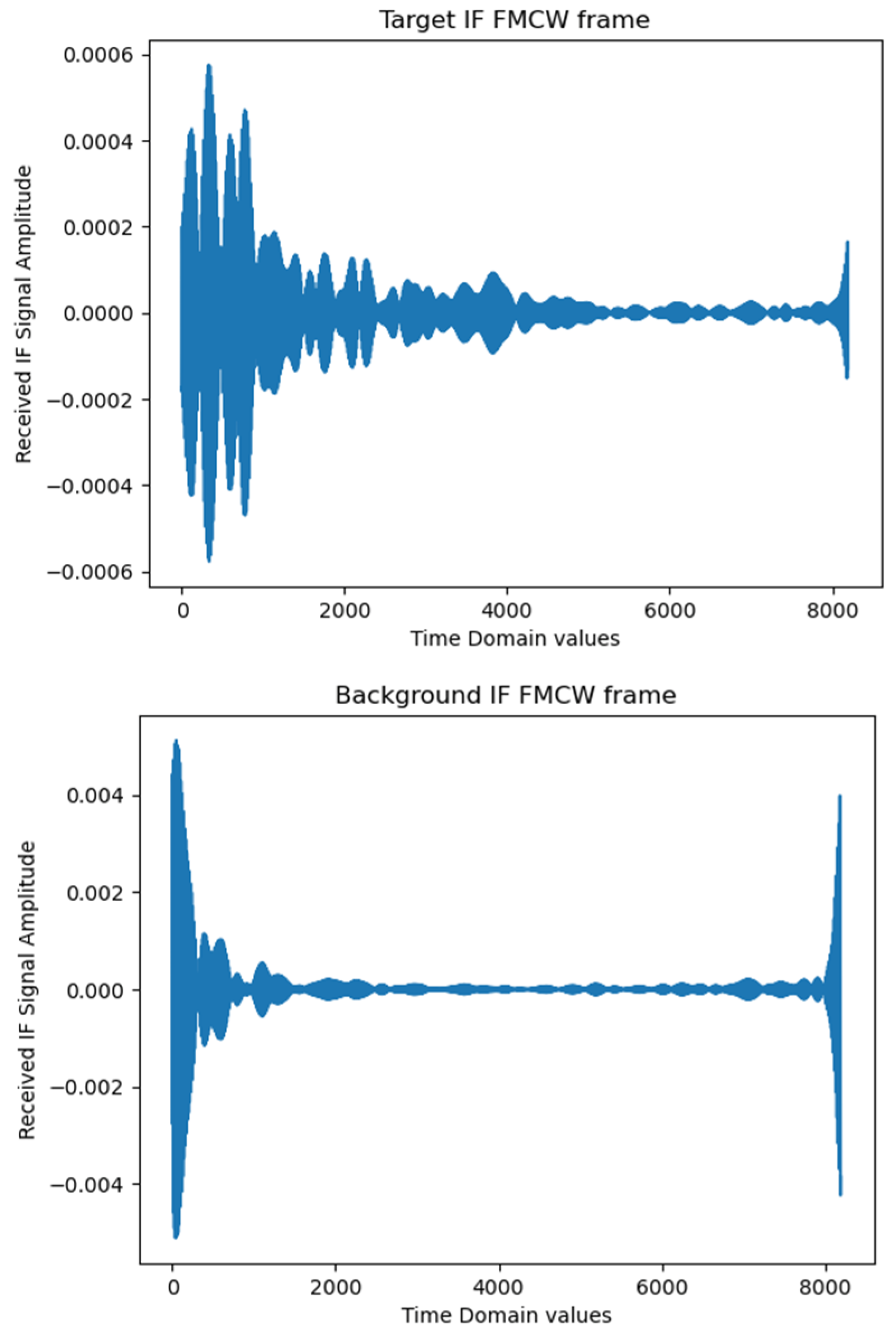 Figure 4 (recorded without the subject), were averaged to create a clutter reference. This reference was subtracted from each radar frame to suppress static environmental reflections and enhance signal-to-noise characteristics, see