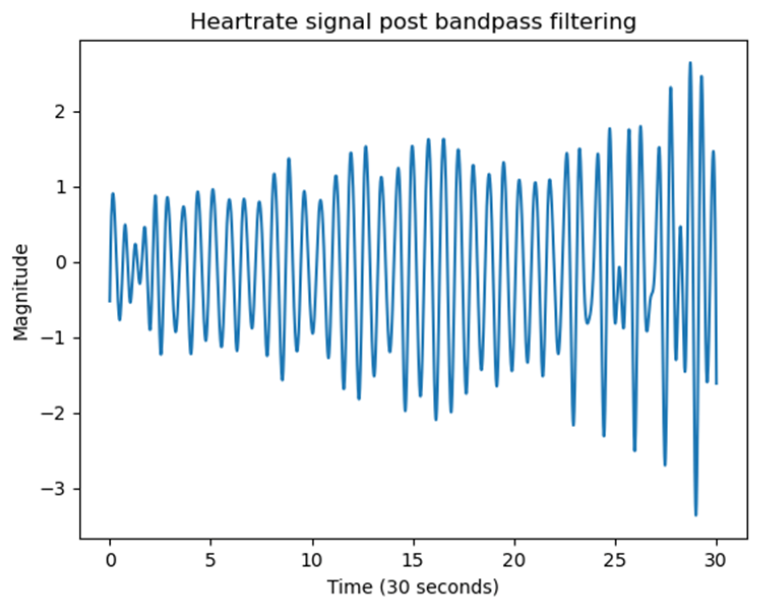 Figure 8). The unwrapped phase signal includes contributions from both respiration and heartbeat. Given that the typical resting heart rate for adults lies between 60 and 100 bpm, a Butterworth bandpass filter with cut-off frequencies from 0.8 Hz to 2 Hz was applied to isolate the cardiac component. The time intervals between successive peaks were used to identify inter-beat intervals (IBIs).