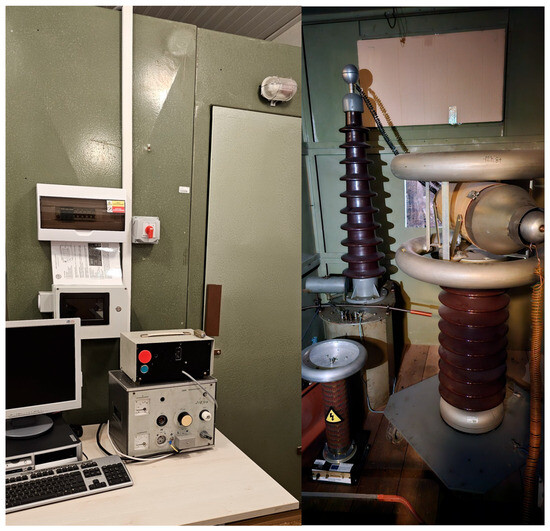 The tested inductive sensors were connected as shown in Figure 4. The sensor is denoted as IS (inductive sensor) and it is connected to the input of the preamplifier of the measurement device (MD). The coupling capacitance and measuring impedance, together with the measurement object, create the basic high-voltage circuit. The high-voltage transformer (HV TR) supplies the circuit with high voltage, which is measured by an electrostatic voltmeter (EV). The high voltage level is adjusted by a regulator.