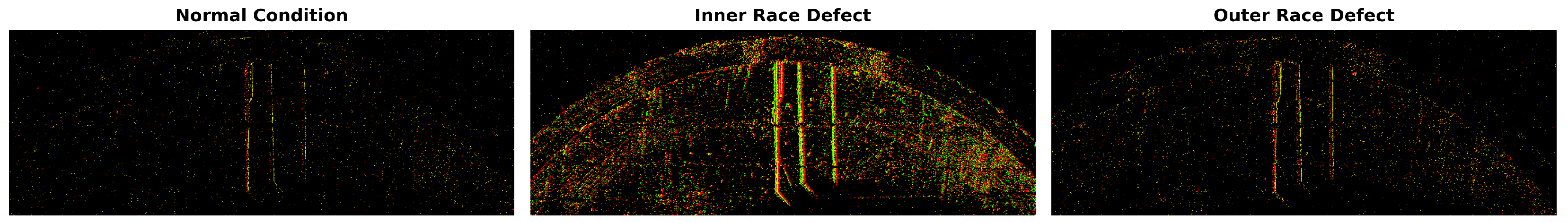 - Taseski, D.I.; Li, W.; Peng, Z.; Borghesani, P. Event-based vision for non-contact, high-speed bearing fault diagnosis. Mech. Syst. Signal Process. 2024, 205, 110789. [Google Scholar]