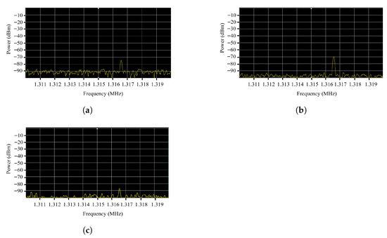 We also examined which frequency bands were most suitable for signal detection. Figure 4 shows the distribution of the strength of the electromagnetic signal during silent playback in the three models. The 1.316–1.317 MHz frequency band exhibited relatively strong emissions with minimal ambient noise, making it a suitable candidate for demodulation. Among the three models, the Galaxy S21 produced the strongest signal, suggesting that signal pre-processing may be necessary for weaker emitting devices such as the Galaxy S23.
