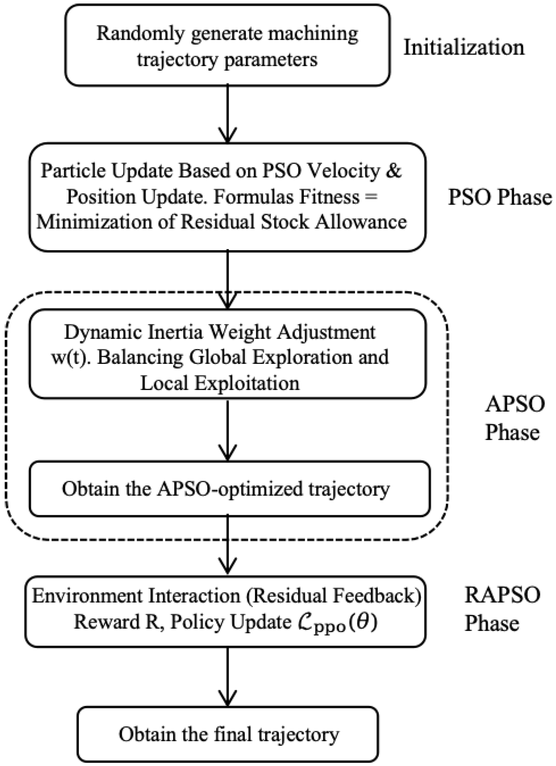 - Compensation Module Based on Reinforcement Learning. A reinforcement learning compensation module using Proximal Policy Optimization (PPO) is integrated. This module is capable of dynamically adjusting strategies based on real-time feedback, reducing processing errors caused by springback and overcutting, thereby further enhancing machining accuracy and surface smoothness.