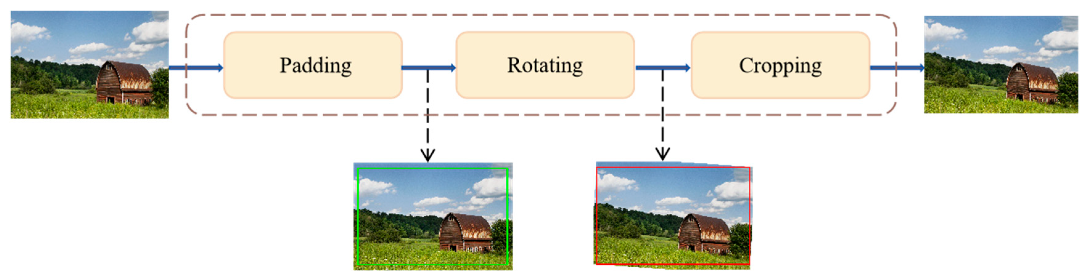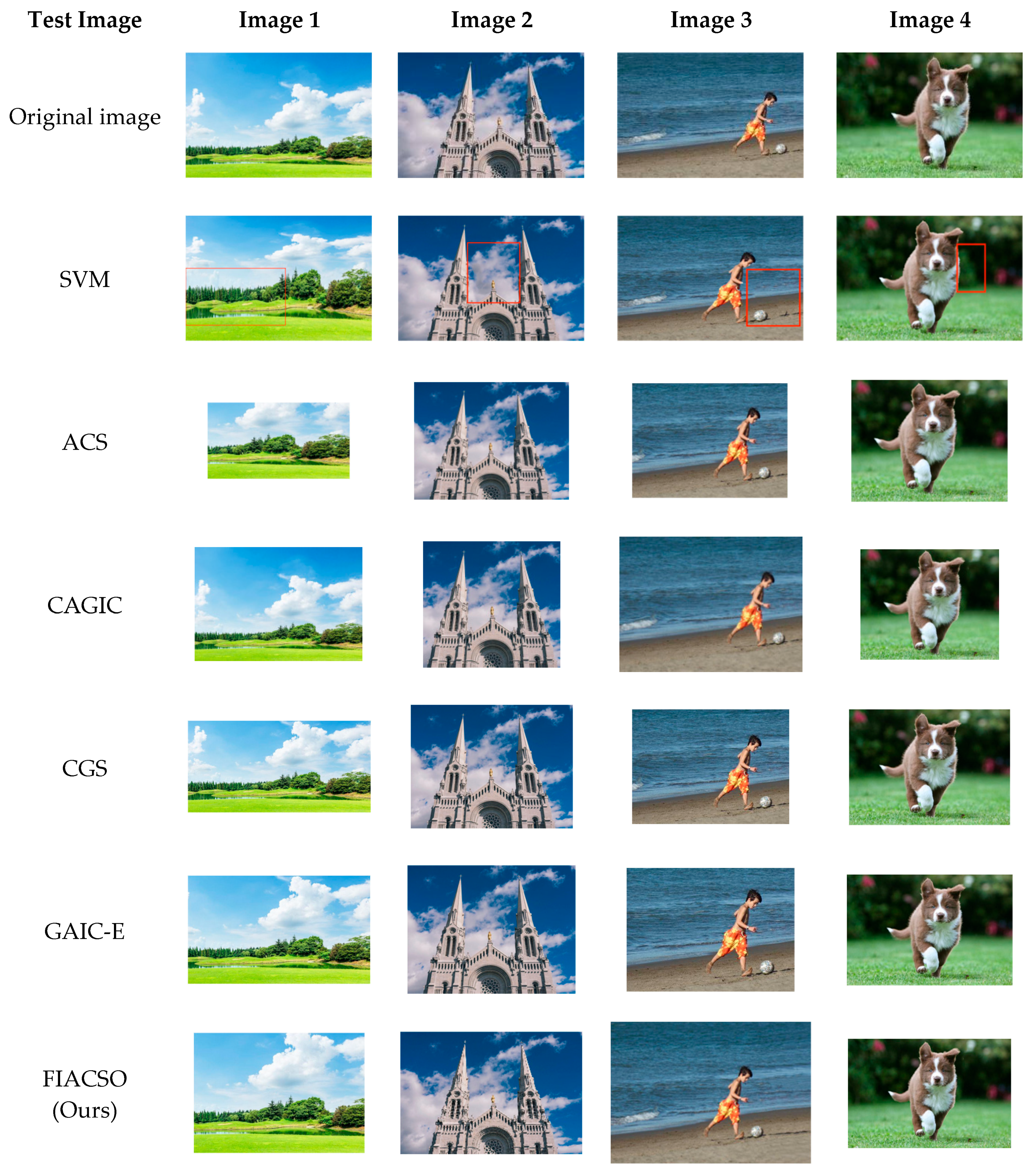 To ensure the quality of output images, optimization focused on two essential attributes. Firstly, the image composition was optimized according to specific compositional rules. Secondly, the optimized image preserved as much information from the original image as possible while minimizing visual flaws or distortions. To address these requirements, an IACS method was proposed. This method combined the aesthetics of image composition and the similarity between the final and the original images into a unified function, calculated according to the following Equation (1):