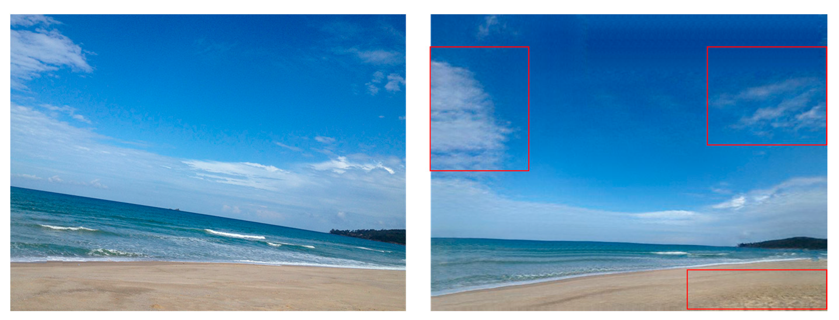 Image aesthetic evaluation with composition and similarity (IACS): In this section, a unified function was used to balance composition aesthetics and image similarity. The evaluation of composition aesthetics focused on the distance between the main semantic line or salient object and the nearest rule-of-thirds line or central line. For images with prominent semantic lines, an modified Hough transform was employed to detect the main semantic line. For images containing salient objects, a salient object detection method based on LCSF was utilized to determine the salient object region. In evaluating the similarity to original images, edge similarity measured by Canny operator was combined with the SSIM for measurement.