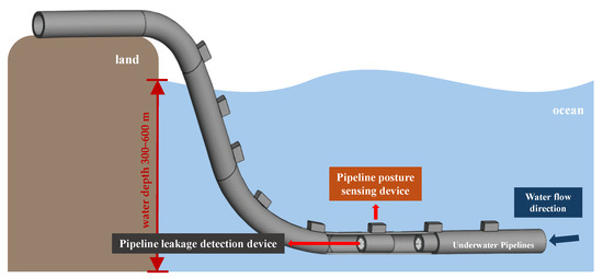 Currently, various pipeline monitoring technologies exist in both the industry and academia, utilizing principles from optical, acoustic, magnetic, and electrical fields. For instance, fiber optic sensors can detect minor strains in pipelines [3]; ultrasonic transmission and echo analysis can identify internal defects through acoustic reflections [4,5]; magnetic flux leakage testing [6,7] and eddy current scanning [8] are specialized in detecting metal loss and surface flaws; hydrophones can monitor acoustic signals generated by pipeline leaks [9]. Furthermore, autonomous underwater vehicles (AUVs) equipped with multiple sensing modules and pipeline inspection robots are extensively utilized for routine inspection tasks [10].