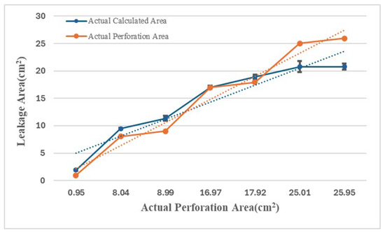 Comparing Estimated and Actual Perforation Areas with Standard Deviation Bars. The dotted line represents the trend line.