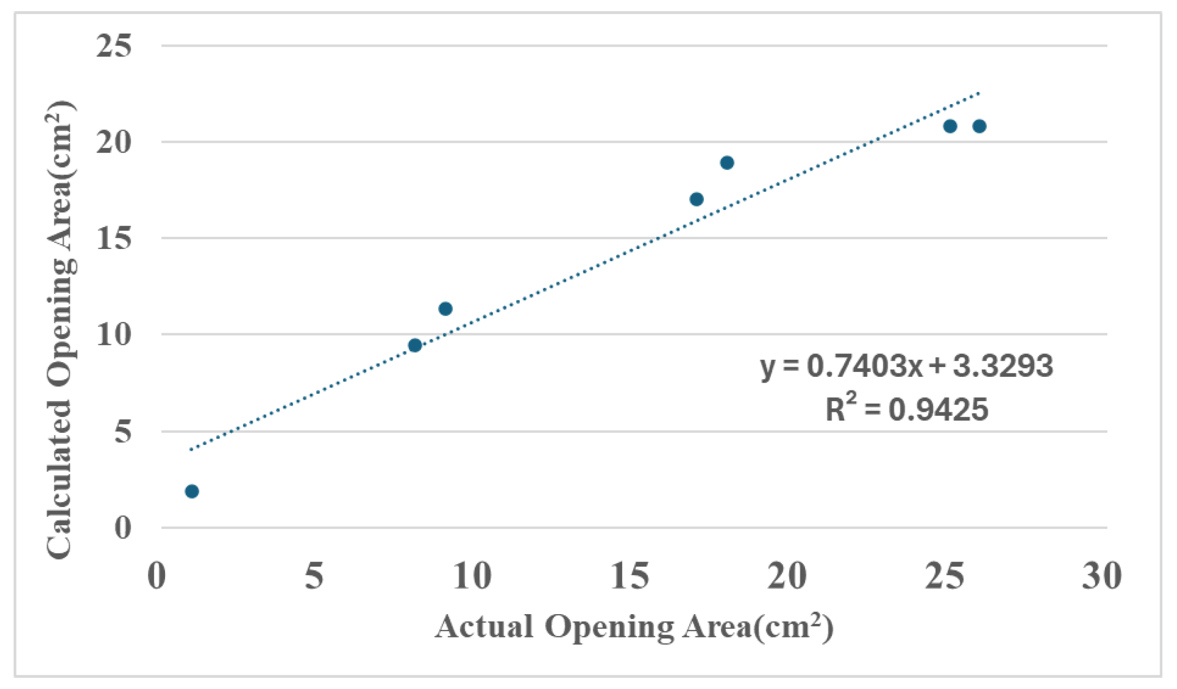 Damage Area (cm2) | Flow Difference ± Std Dev (L/min) | Calculated Area ± Std Dev (cm2) | Area Error (cm2) | Error |