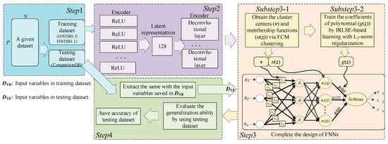 - Partitioning: The training set is used for autoencoder training, hyperparameter tuning, and fuzzy classifier learning, while the testing set is reserved exclusively for evaluating generalization performance.