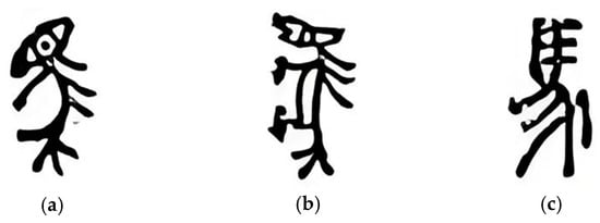 Examples of the character “horse” across three ancient scripts: (a) Oracle Bone Script (OBS), (b) Bronze Inscriptions (BI), and (c) Small Seal Script (SSS).