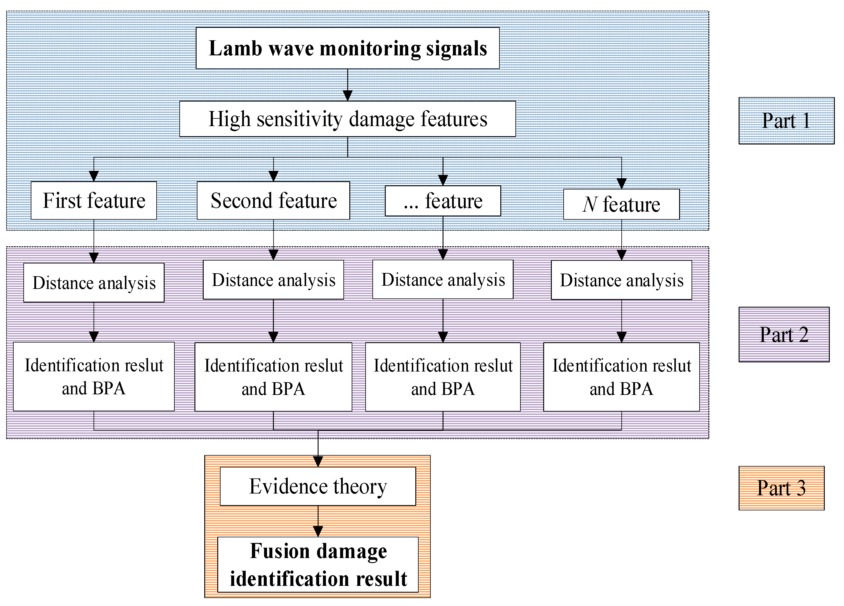 Section 3 presents the proposed damage fusion identification method based on distance analysis and evidence theory in detail, including a brief review of evidence theory, BPAs based on Euclidean distance and the whole fused damage identification process. In