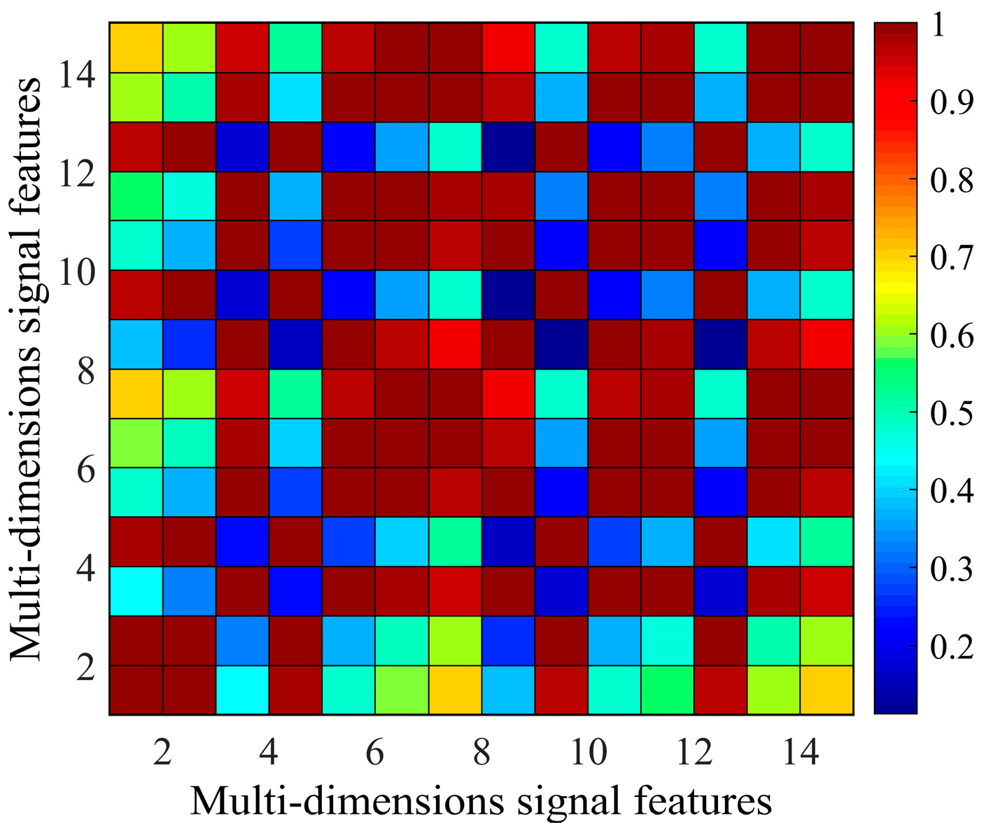 27]. The Pearson correlation matrix is used to reduce the dimensions of fifteen signal features to retain the orthogonal and highly sensitive signal features in this paper.
