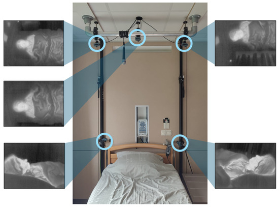 Five thermal cameras were placed symmetrically around the head side of the bed, as shown in
