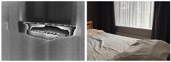 Figure 5 shows the observed influence of a heater in a thermal image. Additionally, due to the clinical setting, camera positions were occasionally disturbed by patient movement or unintentional contact from healthcare staff, leading to the loss of video signal. These factors highlight the importance of robust camera solutions that can be potentially solved with sturdier mounting structures, a dynamic selection of cameras, and robust video processing algorithms that can isolate the respiration signal even in adverse conditions.