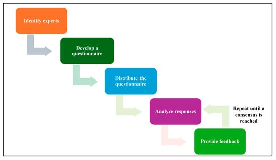 - Repeat steps 4 and 5: Continue this process of iteration and feedback until a consensus is reached. Figure 4 illustrates the Delphi method steps.