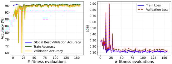 The final model was trained using the Adam optimizer, with the optimal hyperparameters obtained through the GWO. The optimization process achieved a peak validation overall accuracy of 97% and a minimum validation loss of 0.12, reflecting a strong fit to both training and validation datasets. The corresponding convergence of accuracy and loss during training is illustrated in Figure 17.