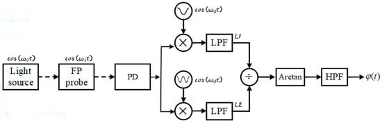 - Peng, F.; Hou, L.; Yang, J.; Yuan, Y.; Li, C.; Yan, D.; Yuan, L.; Zheng, H.; Chang, Z.; Ma, K.; et al. An improved fixed phased demodulation method combined with phase generated carrier (PGC) and ellipse fitting algorithm. Proc. SPIE 2015, 9620, 96200S. [Google Scholar]