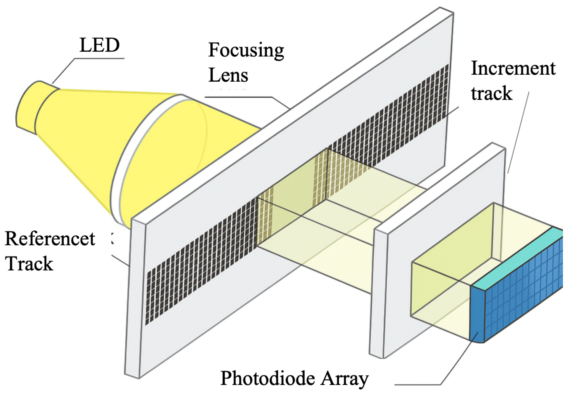 - Improving the position resolution requires increasing the number of code tracks, which in turn necessitates more photoelectric sensors. This added complexity hinders the miniaturization and integration of the device.