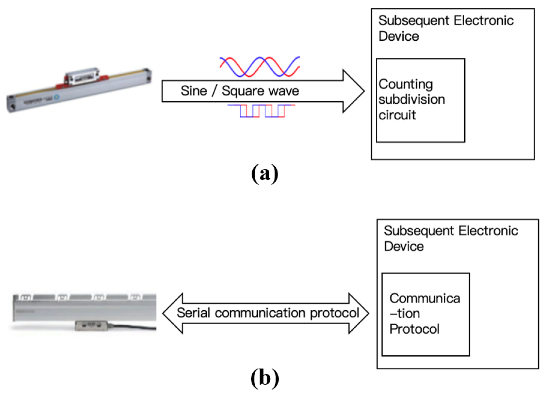 - Communication Protocols: Absolute linear encoders typically transmit position data via serial communication interfaces, with different manufacturers adopting distinct protocol standards. Therefore, protocol compatibility with the numerical control (NC) system is a decisive factor in encoder selection. For instance, HEIDENHAIN encoders frequently employ the EnDat 2.2 protocol, which is noted for its high transmission speed, strong anti-interference capabilities, and seamless integration with HEIDENHAIN NC systems. This makes them particularly suitable for high-precision applications. Encoders from FAGOR commonly utilize the SSI protocol, valued for its universality and robustness and widely compatible with Siemens and other mainstream NC platforms, thereby providing users with versatile integration options. Meanwhile, Renishaw encoders, as well as those developed by the Changchun Institute of Optics, Fine Mechanics, and Physics of the Chinese Academy of Sciences, often adopt the BiSS protocol, which offers high-speed and high-accuracy data transmission. This makes it particularly advantageous in aerospace machining and other fields requiring stringent positional accuracy and real-time feedback.